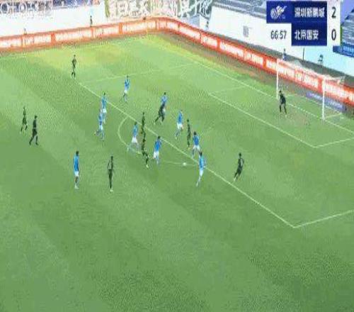 比赛第33分钟,埃杜·加西亚传中,韦斯利推射破门。深圳新鹏城2比0领先北京国安。