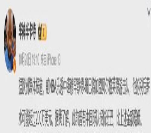 据国内媒体人透露,有CBA球队同样有意签下班巴,但报价比贝尔格莱德游击队提供的薪资低一点。