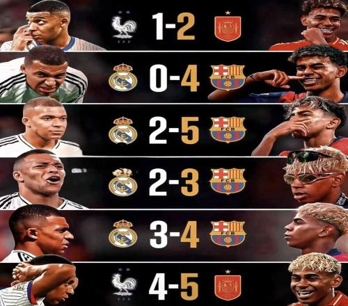 雷速体育10月26日宣 北京时间今天23点15分,西甲国家德比,皇马主场迎战巴萨,本场比赛也是亚马尔和姆巴佩对决引人关注。在此前的6次交锋中,亚马尔所在的俱乐部和国家队均战胜姆