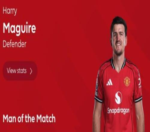 头球绝杀,马奎尔当选双红会英超官方全场最佳球员