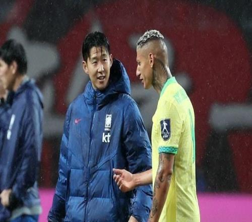 老友相见,巴西大胜韩国赛后,里沙利松与孙兴慜交谈并拥抱